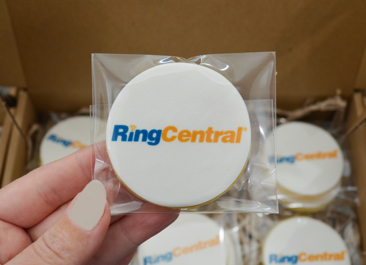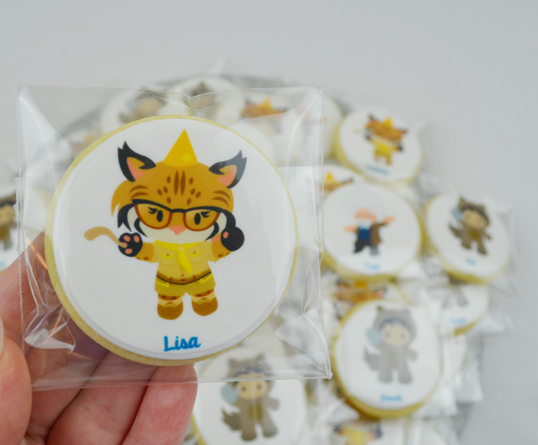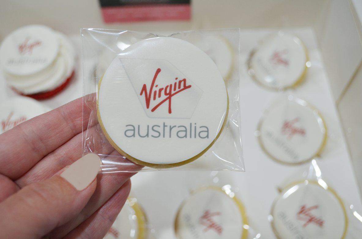 Custom-made Corporate (Edible Logo) Cookies featuring your logo or branding for your upcoming company event. Available for delivery throughout Australia.